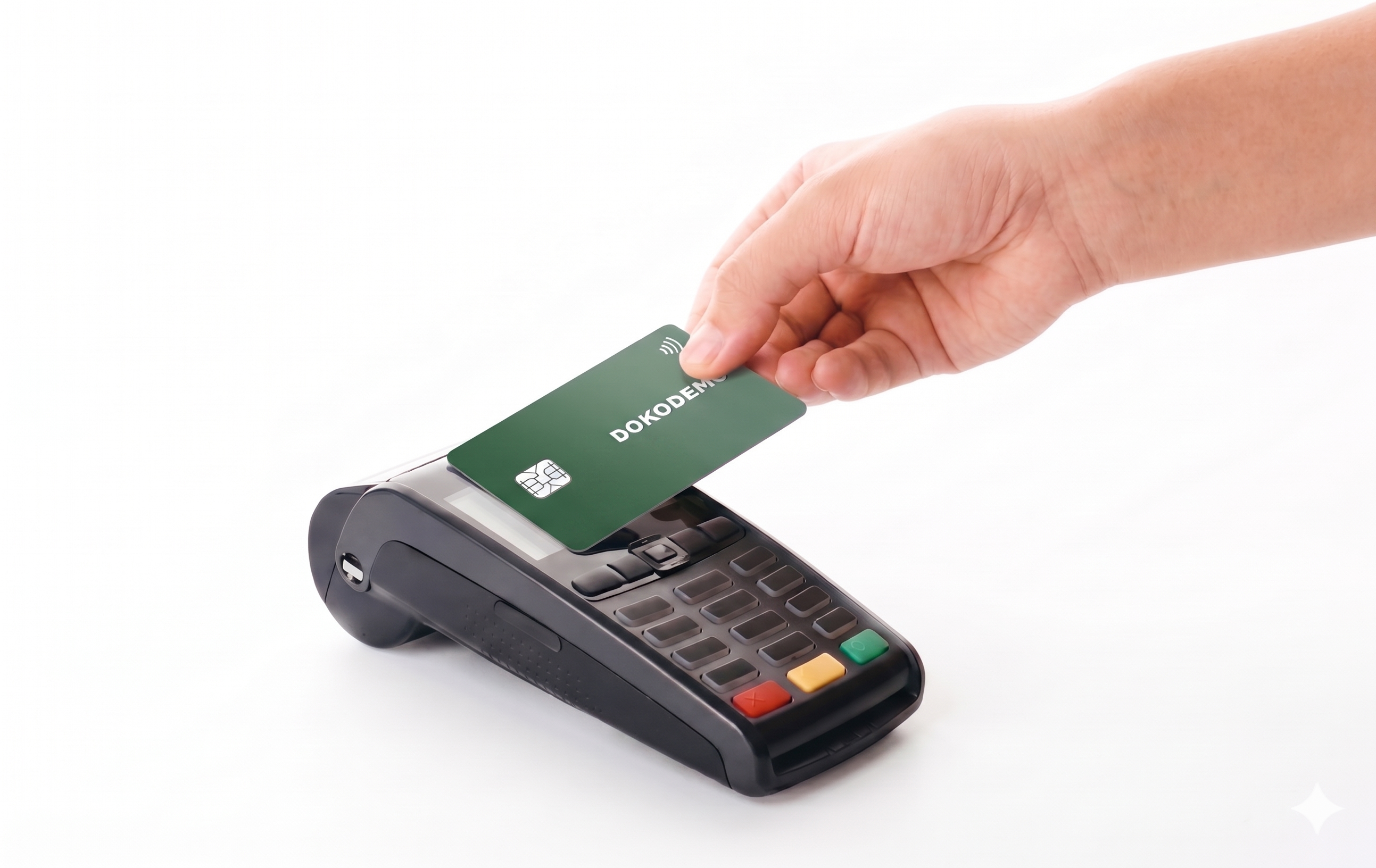 お会計はクレジットカードと同じように、 そのままカードで支払うだけ。 面倒な操作やアプリは不要です。
